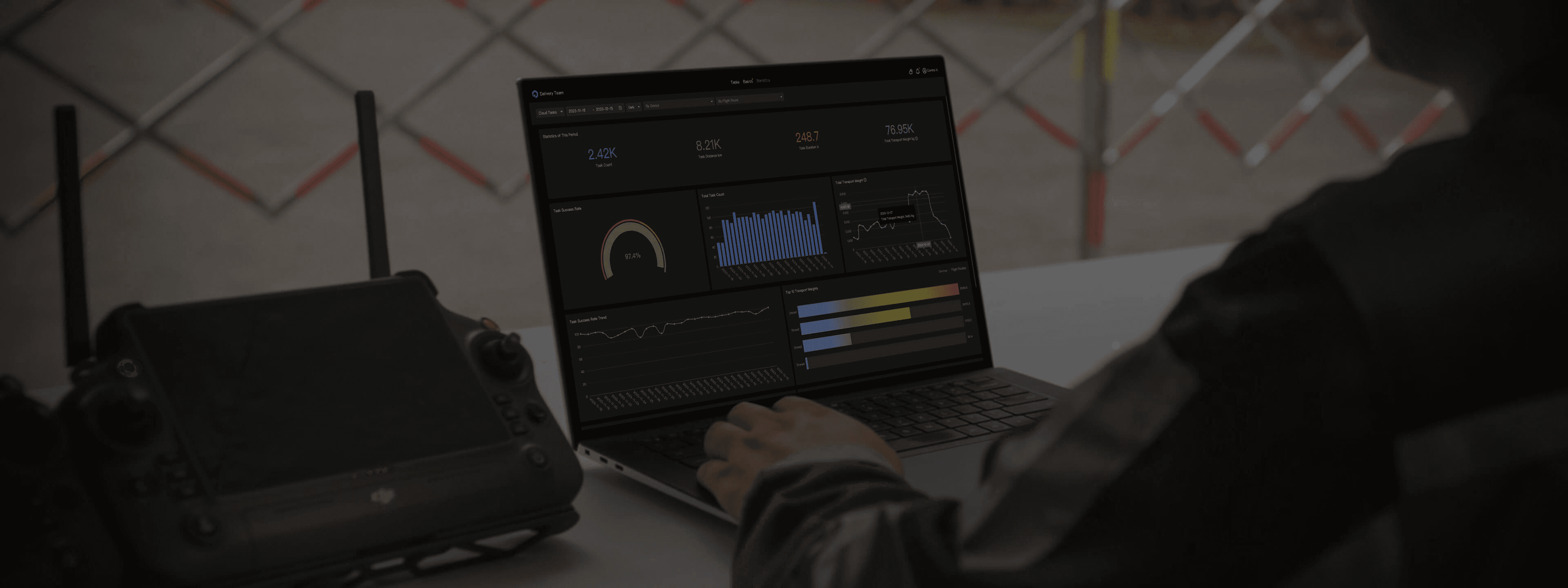 DJI DeliveryHub collects and displays data across device, route, and time, so you can evaluate efficiency and optimize future operations.