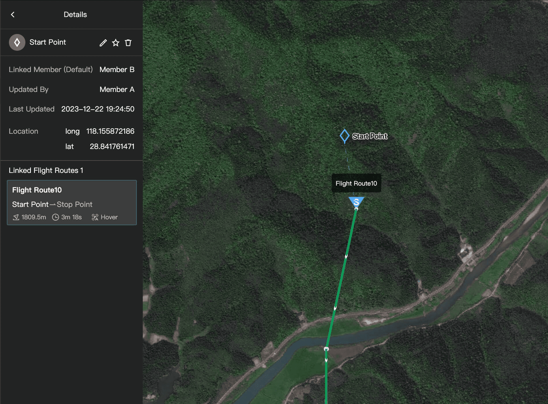 Mark locations, allocate operation areas, and set and manage alternate landing sites using remote controllers, mobile devices, and computers. Locations are synchronized among multiple devices in real-time for efficient collaboration.